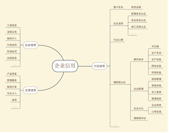 企業(yè)信用體系由社會信用、行業(yè)信用、交易信用等三部分構(gòu)成,分別從以工商、法院、環(huán)保為主體的政府行政管理數(shù)據(jù),行業(yè)輿論、企業(yè)資質(zhì)、客戶關(guān)系等行業(yè)數(shù)據(jù),在線交易過程中記錄的產(chǎn)品、服務(wù)、履約數(shù)據(jù)三個維度進行整合和分析。