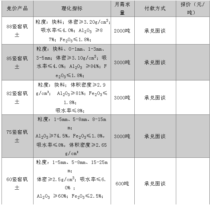 Al2O3〈68%退貨,F(xiàn)e2O3<8%按V60接收,F(xiàn)e2O3≥8%退貨