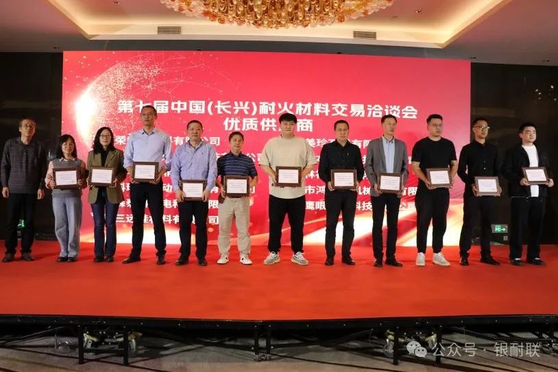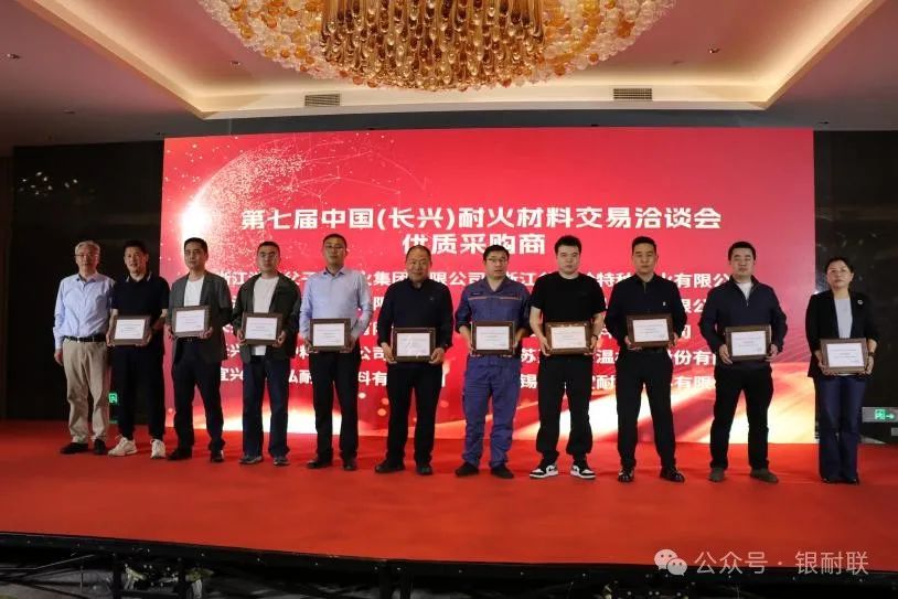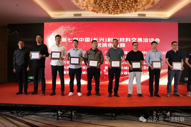 銀耐聯(lián)平臺有眾多供貨商,為客戶提供了質(zhì)優(yōu)價廉的產(chǎn)品,受到了廣大采購商的青睞,切實為客戶真正做到了降本增效,供采雙方建立了長期良好的合作關(guān)系。此次晚宴上,特別舉辦了銀耐聯(lián)優(yōu)質(zhì)供貨商、采購商的頒獎典禮,共評選出30家優(yōu)質(zhì)供貨商、10家優(yōu)質(zhì)采購商。第一組獲獎的優(yōu)質(zhì)供貨商有:遼寧鵬飛實業(yè)有限公司、廣西扶綏縣盛唐礦物材料有限責任公司、滎陽市和興耐材有限公司、河南昌平耐火材料有限公司、新沂市萬和礦業(yè)有限公司、浙江鑫寶耐火材料有限公司、遼寧瑞興機械工程有限公司、青島迪凱機械設(shè)備有限公司、棗莊市復(fù)糧包裝機械有限公司、山東海石儀器科技有限公司。由浙江省耐火材料行業(yè)協(xié)會常務(wù)副會長談利強先生為獲獎企業(yè)授牌,遼寧鵬飛實業(yè)有限公司岳學(xué)軍先生發(fā)表了獲獎感言。